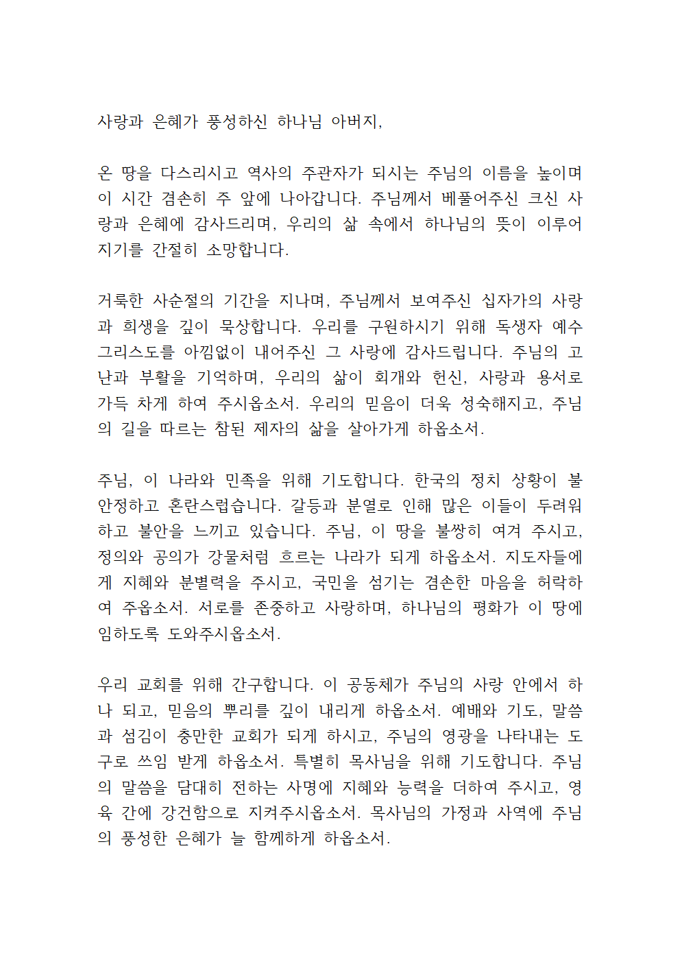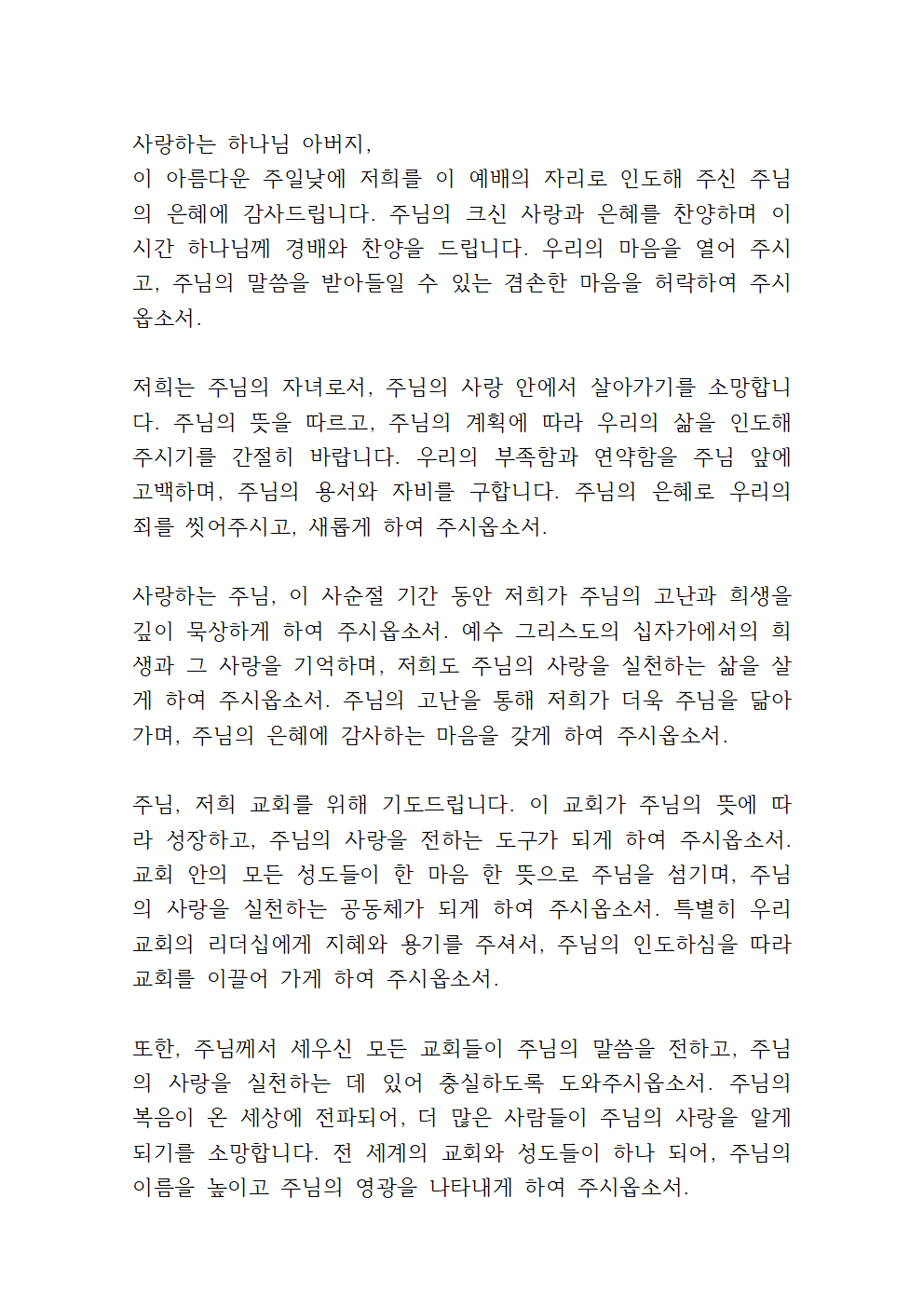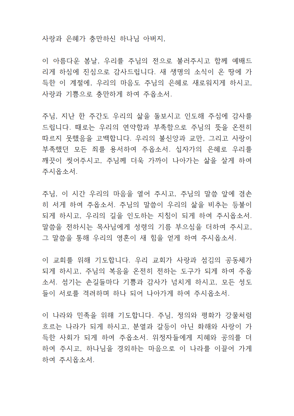 2025년 3월 다섯째 주일 대표기도문 파일