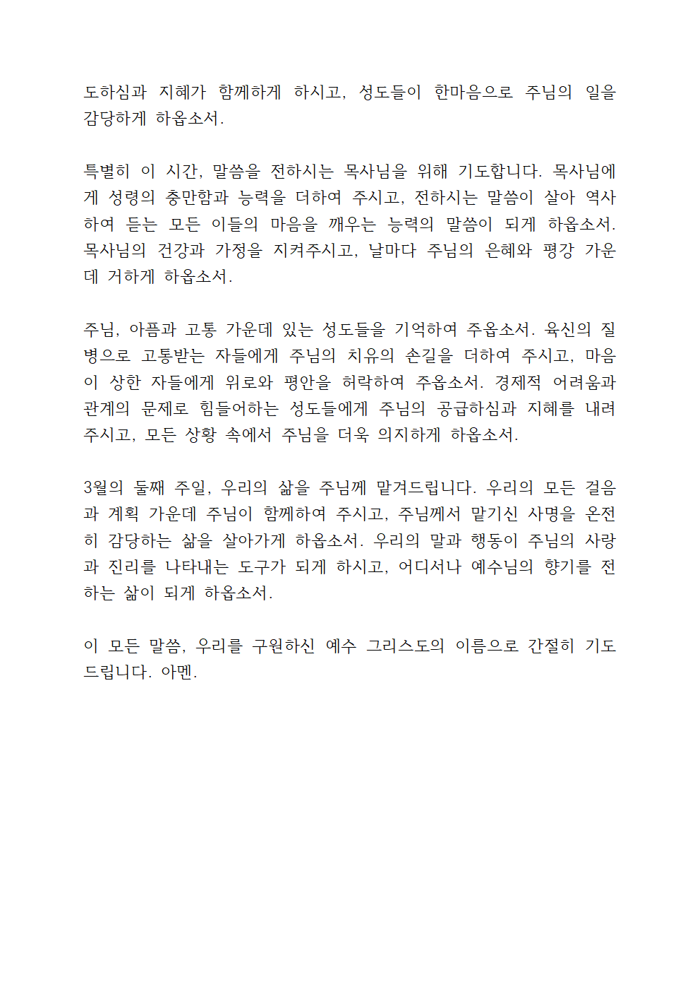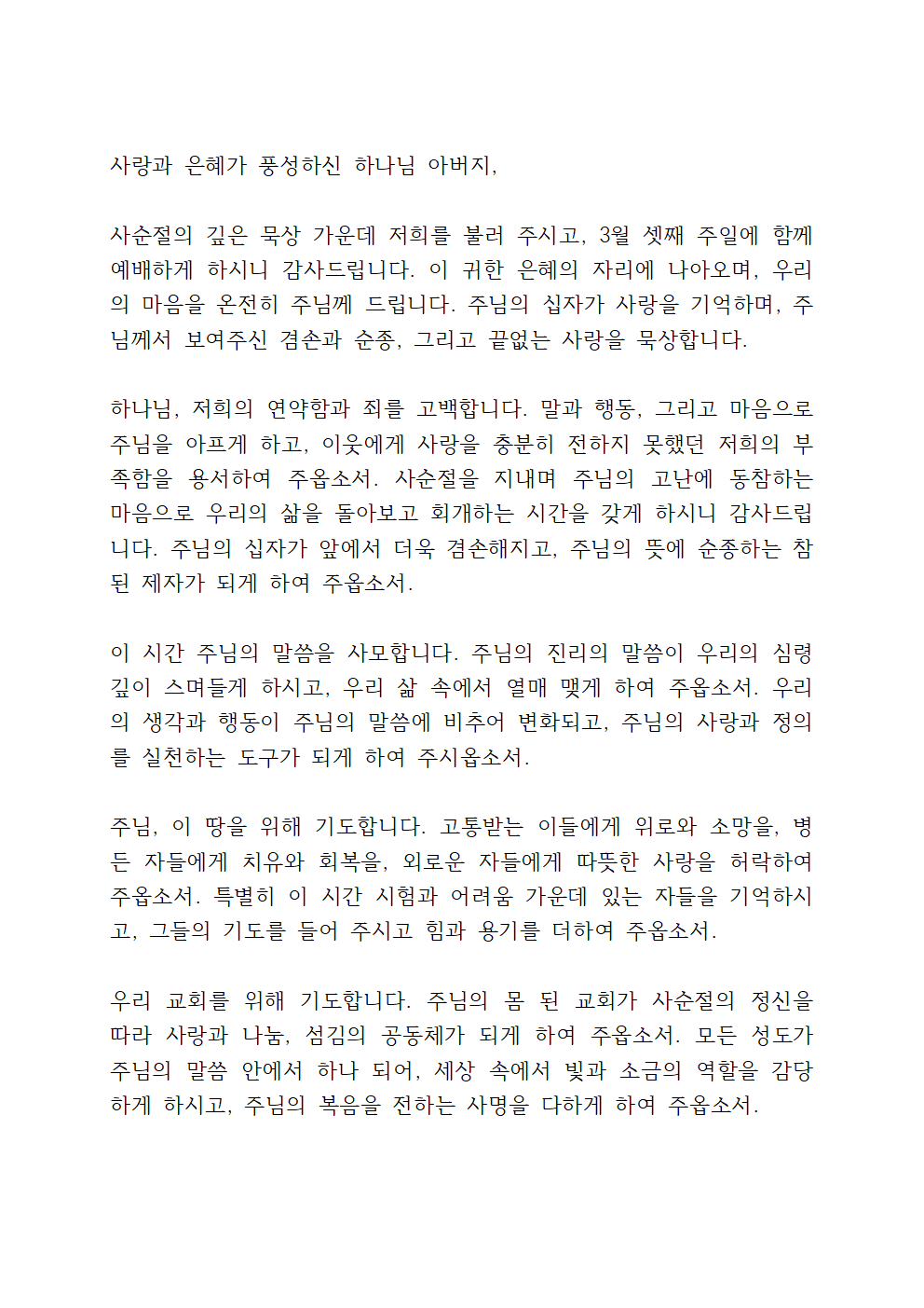 2025년 3월 주일 낮예배 대표기도문 모음 (hwp)
