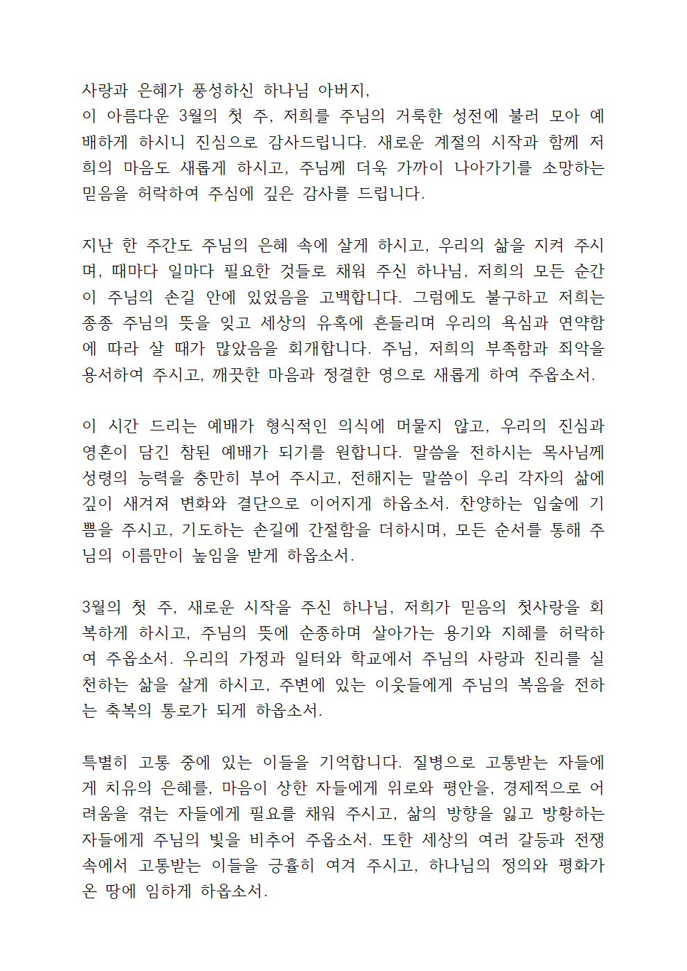 2025년 3월 첫째 주일 예배 대표기도문 파일