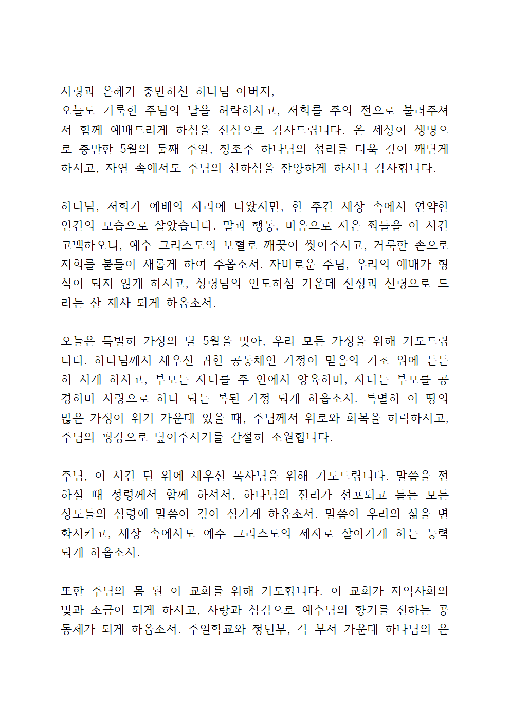 5월 둘째 주일 대표기도문 2