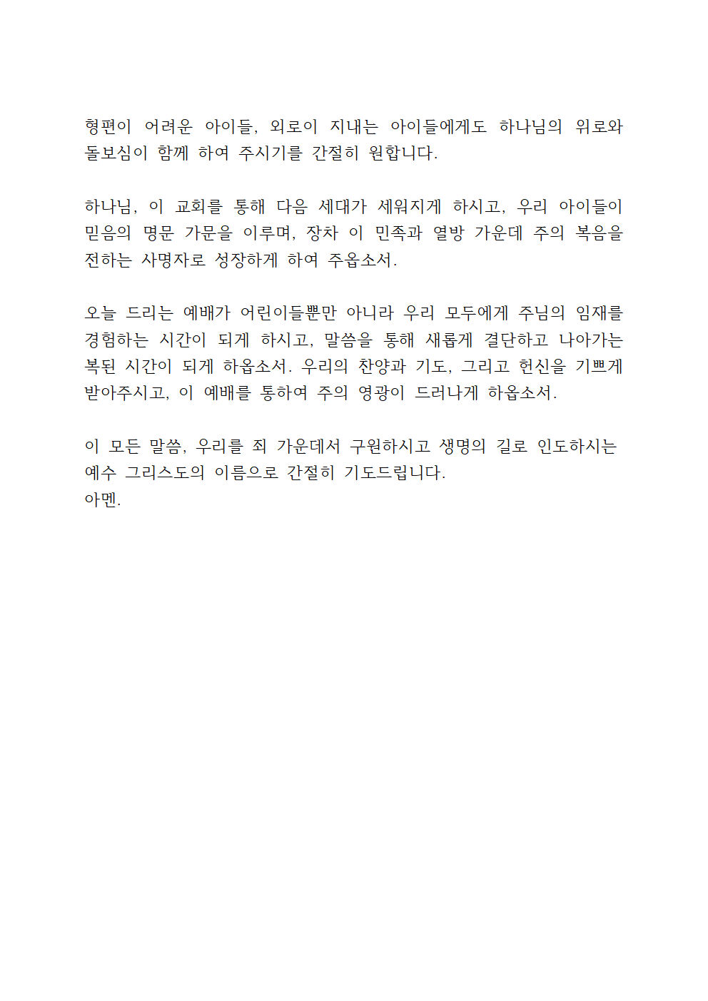 그렇기 때문에 다른 어느 때보다 자녀들을 비롯해 교회 아이들 & 다음 세대를 위해 기도하는 내용이 필요합니다.