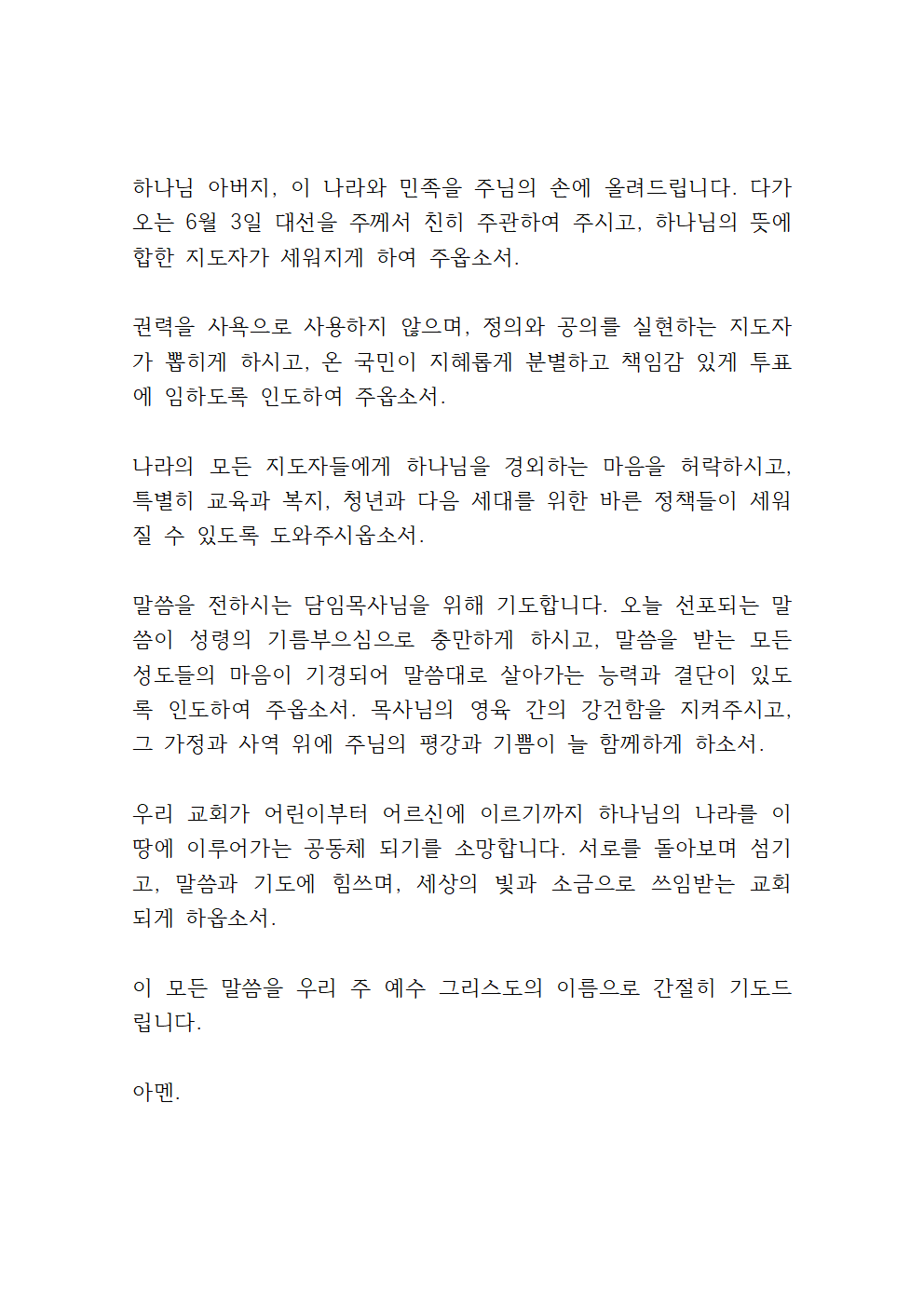 대선을 위한 기도문