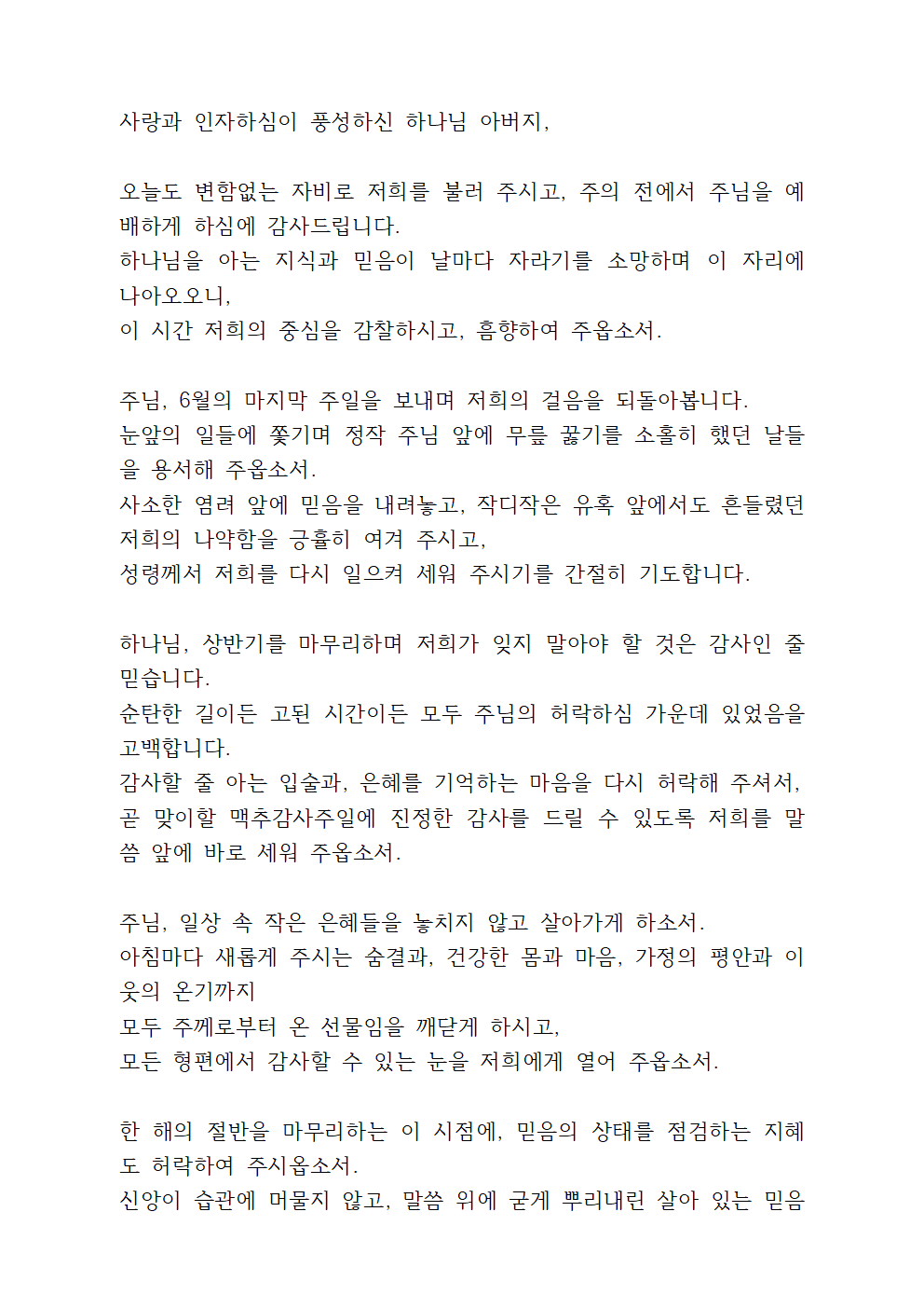 6월 다섯째 주 관련 기도문 더 보기