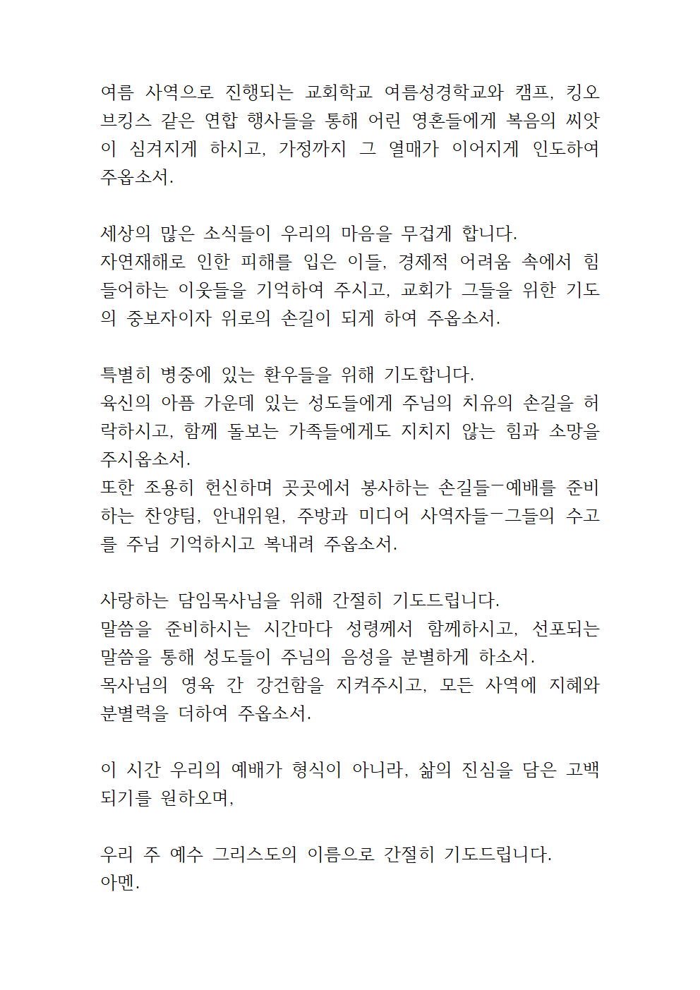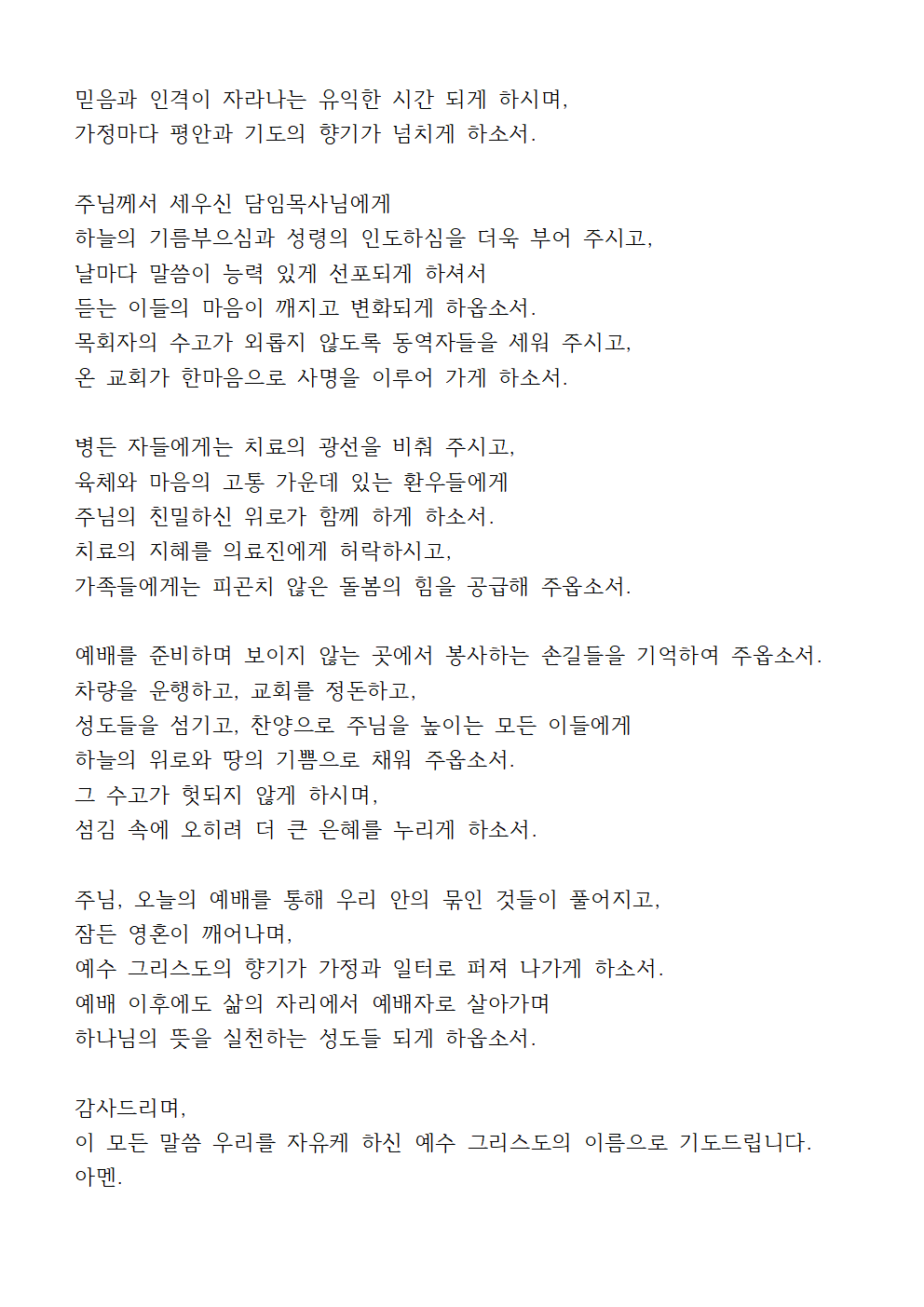 '8월 둘째주일 낮예배 대표기도문 모음'