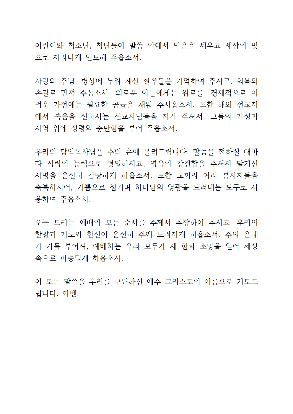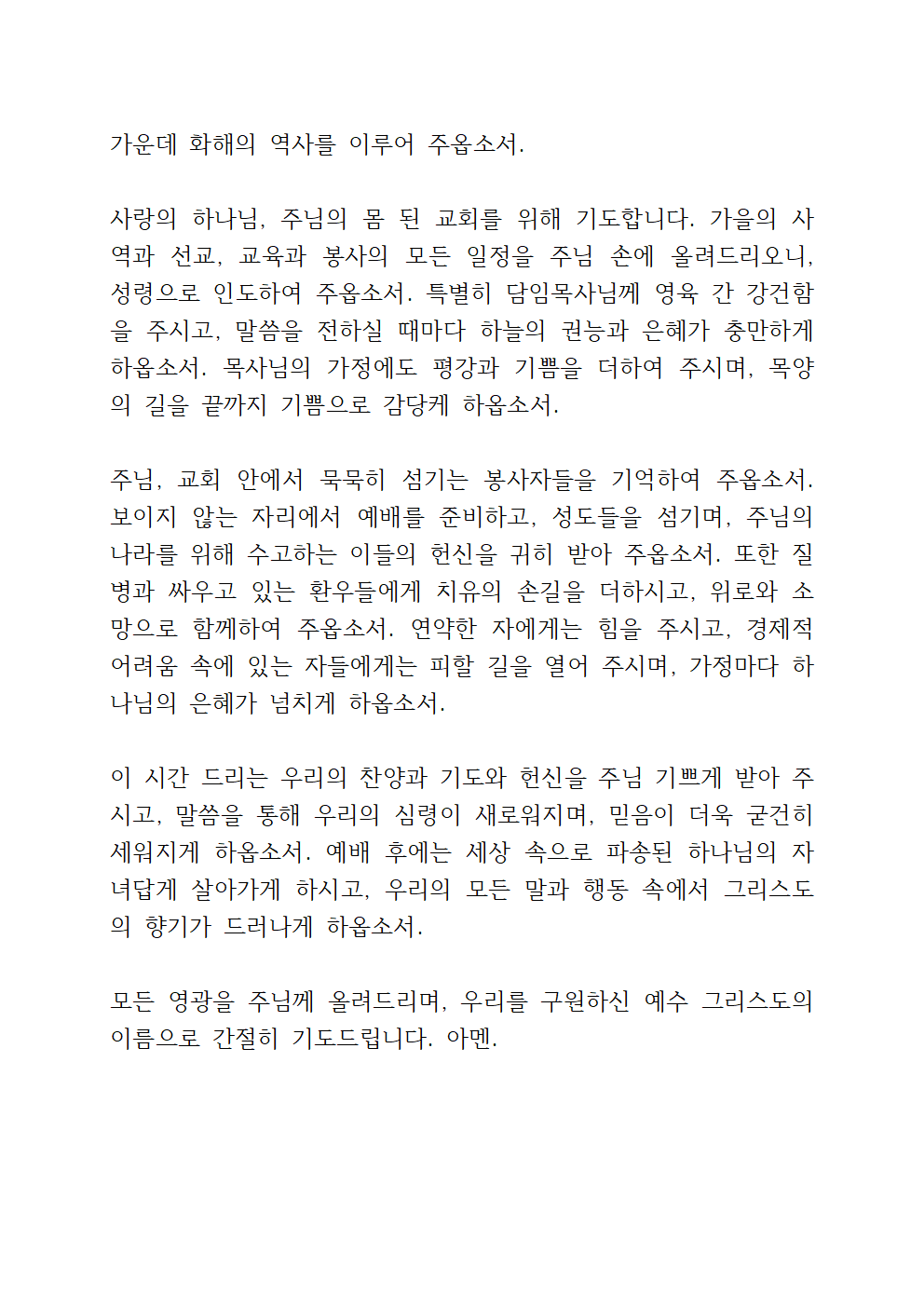 9월 둘째주일낮예배 대표기도문 첨부 파일